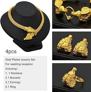 4. Specs & Dimensions: Necklace weight: 50.8g, bracelets weight 37.2 g, earrings weight: 20.5 g, rings weight: 11.6 g, total weight 120.6 g, please refer to the pictures for more size details.