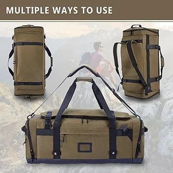 4. Multi-Purpose Carry-On Duffle Bag – Use as a duffle backpack or carry-on duffel bag with its convertible straps. The canvas duffle bag has secure zippers and extra compartments, perfect as a mens duffle bags for traveling or a travel duffel bag for women