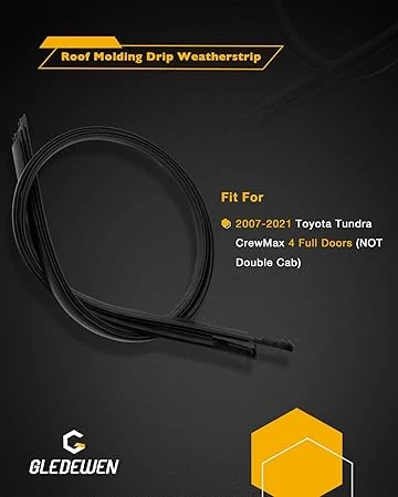 Roof Trim Molding (Pair), Roof Weatherstripping Seal, Compatible with 2007-2021 Toyota Tundra Crewmax 4 Doors (only), Replaces# 75552-0C060, 75551-0C060, Roof Top Drip Seal, Rubber Roof Weather Strip