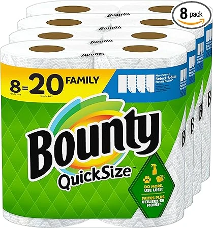 Bounty Quick Size Paper Towels, White, 8 Family Rolls = 20 Regular Rolls (Packaging May Vary)