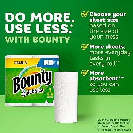 2. SUPERIOR SHEET COUNT: With 4 packs of 2 Family Rolls, these paper towels offer more sheets for more tasks, providing excellent value compared to Bounty Double Plus.
