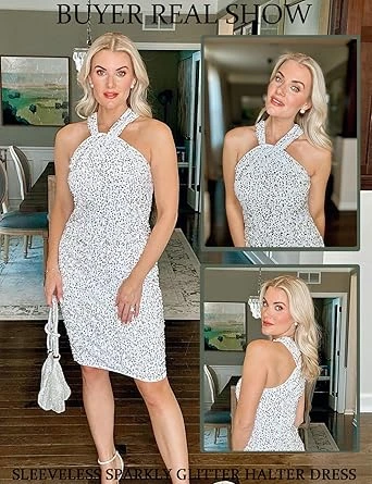 1. FEATURES:Sequin dress,black sequin dress,halter bodycon dress, midi party club sequin dress, sparkly sleeveless cocktail dress for women, glitter halter dresses, above the knee,sparkling sequin dresses, elegant sleeveless pencil dresses, stylish halter neck dresses, sexy party dresses, glamorous club party dresses