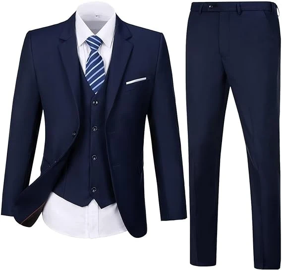 Mens Suit Solid Two Button Slim Fit Suit Set for Wedding Formal Business Suit Men 3 Piece Suit Blazer Vest Pants Set