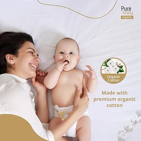 Pure Baby Baby Diapers with Organic Cotton Core Size 3, 4 to 6 kg, Superior Absorption, 56 count
