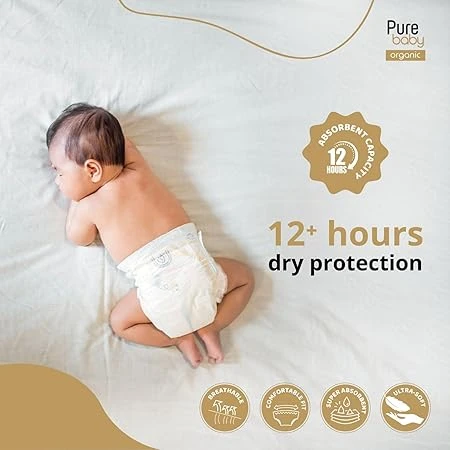 8. Easy-to-Use Design: Pure Baby Diapers feature resealable tabs for easy diaper changes. The tabs can be refastened multiple times, allowing for a secure fit and ensuring quick and hassle-free diapering.