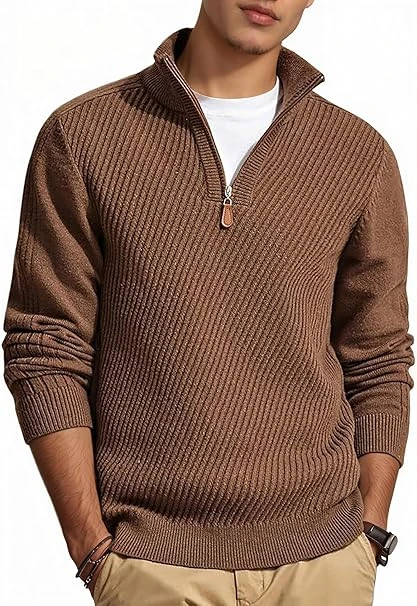 Runcati Mens Quarter Zip Pullover Slim Fit Lightweight Sweaters Casual Long Sleeve Knit Texture Sweater