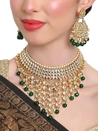 Shining Diva Fashion 18k Gold Plated Latest Stylish Choker Traditional Pearl Kundan Necklace Jewellery Set for Women